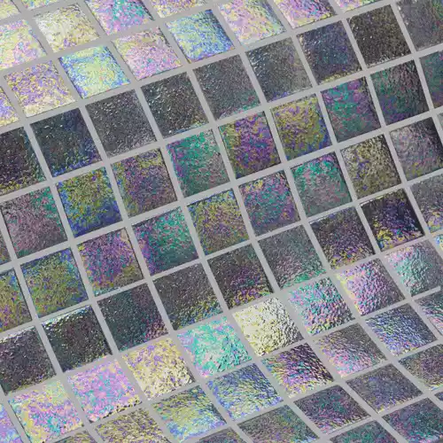 Amalfi antracit har en modern och elegant design, i snygga och fräscha färger! Infallande ljus glänser och det skiner i regnbågens nyanser på mosaikens lätt grova och högblanka yta. Varje mosaikbit har sin egna färgskiftning och nyans, vilket ger mosaiken ökad färgvariation och liv.