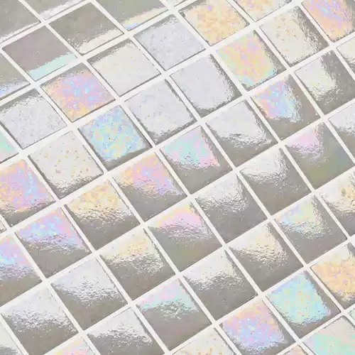 En klassisk, lyxig och elegant glasmosaik – Vita mosaikbitar med en blank, högglansig och vackert skimrande yta. Används på vägg och golv där du vill få en elegant, tidlös och lyxig design. Passar utmärkt som grund- och basplatta för att kombineras med annan och färgad glasmosaik. För golv i badrum, duschplatser och simbassänger.